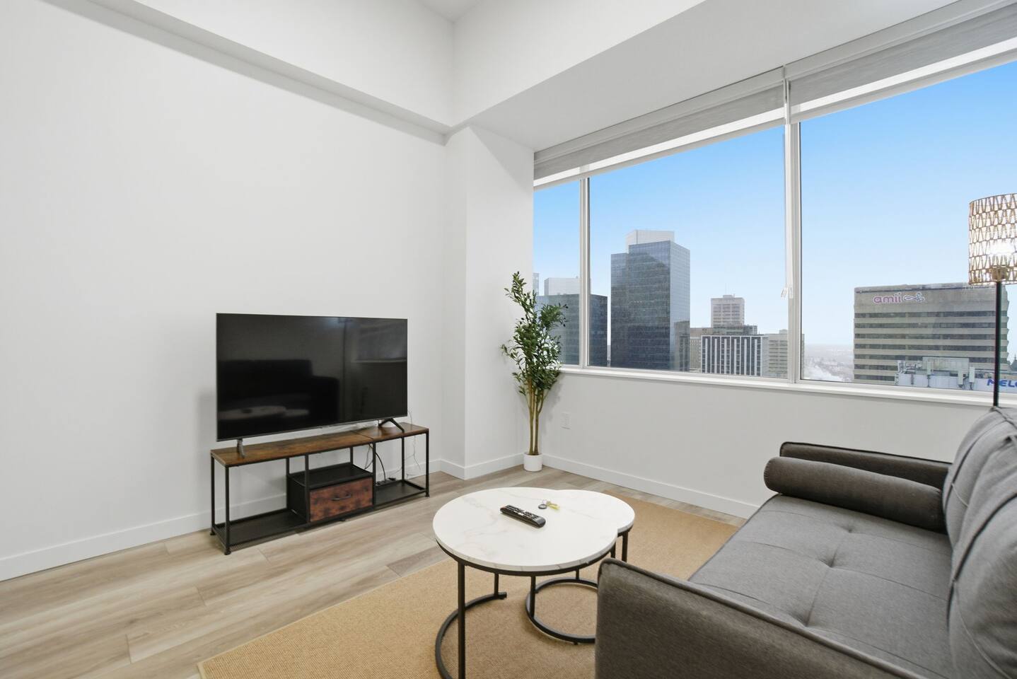 Luxury 1Bed 1Bath on high rise in the heart of downtown Edmonton: - 1 minute to train station Nearness - Nearness/walking distance to restaurants, Rogers stadium, cinemas and shopping malls - Available Parking slot and fantastic night view etc - Above all fantastic price . - The whole group will enjoy easy access to everything from this centrally located place.