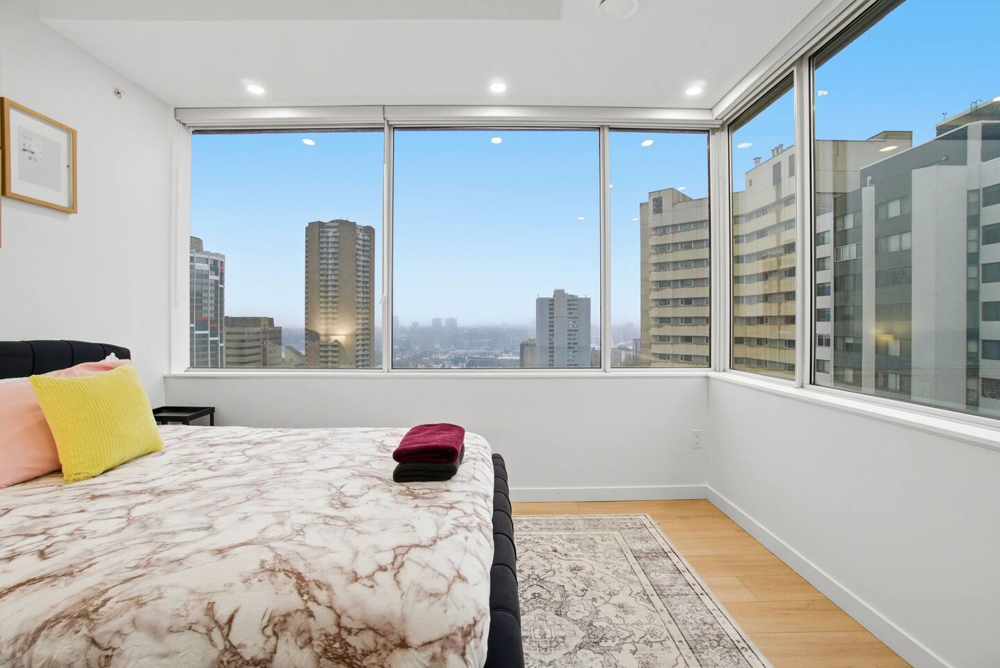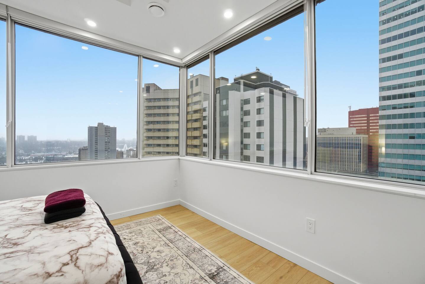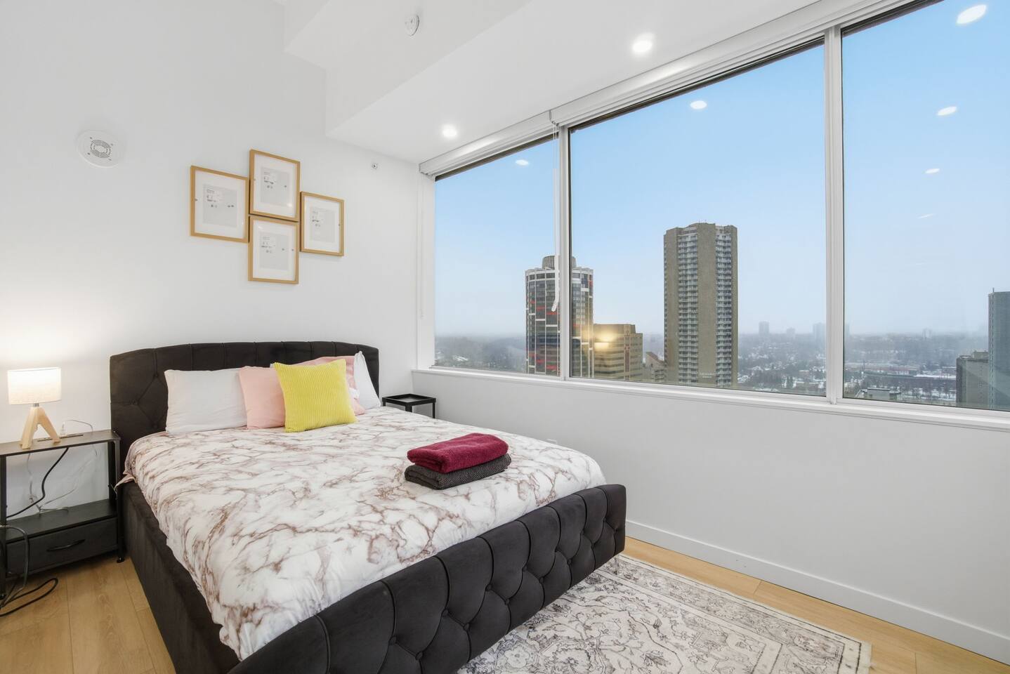 Enjoy a stylish experience at this centrally located place. Luxury 2bed 2Bath on high rise in the heart of downtown Edmonton: 1 minute to train station Nearness Nearness/walking distance to restaurants, Rogers stadium, cinemas and shopping malls Nearness to universities; 2 train stops to U of A High speed internet Free Parking slot and fantastic night view etc Above all fantastic prices.